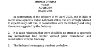 ନୂଆଦିଲ୍ଲୀ, ୦୮/୦୪: ତେହେରାନରେ ଥିବା ଭାରତୀୟ ଦୂତାବାସ ବୁଧବାର ଏକ ନୂଆ ପରାମର୍ଶ ଜାରି କରି ଇରାନରେ ରହୁଥିବା ନାଗରିକମାନଙ୍କୁ ଶୀଘ୍ର ଦେଶ ଛାଡିବାକୁ ଅନୁରୋଧ କରିଛି।...