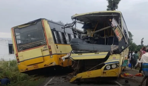 ତାମିଲନାଡୁର ଶିବଗଙ୍ଗା ଜିଲ୍ଲାରେ ଏକ ମର୍ମନ୍ତୁଦ ସଡ଼କ ଦୁର୍ଘଟଣା ଘଟିଛି । ଦୁଇଟି ସରକାରୀ ବସ ମଧ୍ୟରେ ମୁହାଁମୁହିଁ ଧକ୍କା ହେବାରୁ ଆଠ ଜଣ ମହିଳାଙ୍କ ସମେତ ଏଗାର ଜଣଙ୍କର ମୃତ୍ୟୁ ହୋଇଛି । ଏଥିରେ ୨୦ରୁ ଅଧିକ ଗୁରୁତର ଆହତ ହୋଇଛନ୍ତି । ଦୁର୍ଘଟଣା ପରେ ମୃତଦେହଗୁଡ଼ିକ ରାସ୍ତାରେ ବିଛାଡ଼ି ହୋଇ ପଡ଼ିଥିଲା।
