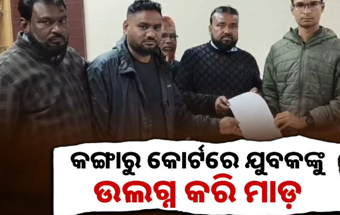 ରାଇରଙ୍ଗପୁର/ବହଳଦା ( ନାବାଳିକାକୁ ପ୍ରେମ ପାଇଁ ଯୁବକଙ୍କୁ କଙ୍ଗାରୁ କୋର୍ଟରେ ଶାସ୍ତି ଉଲଗ୍ନ ଭିଡିଓ ଭାଇରାଲ ହୋଇଛି। ଆଇନକୁ ହାତକୁ ନେଇ ଜଣେ ଯୁବକଙ୍କୁ ଉଲଗ୍ନ କରି ମାଡ଼ମାରି ରକ୍ତାକ୍ତ କରିବା ପରେ ଦଉଡ଼ିରେ ହାତ ବାନ୍ଧି ରାସ୍ତାରେ ଉଲଗ୍ନ କରି ବୁଲାଇଛନ୍ତି। ଏଭଳି ଏକ ଘଟଣା ଘଟିଛି ମୟୂରଭଂଜ ଜିଲ୍ଲା ବହଳଦା ଥାନା ଅଞ୍ଚଳରେ।