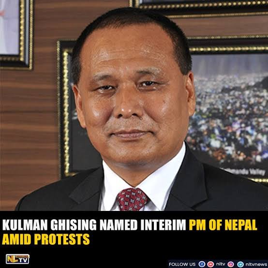 କୁଲମନ ଘିସିଙ୍ଗଙ୍କୁ ଆନ୍ଦୋଳନକାରୀ ଦେଶଭକ୍ତ ଓ ସମସ୍ତଙ୍କ ପସନ୍ଦର ପ୍ରାର୍ଥୀ ଭାବେ ଅଭିହିତ କରିଛନ୍ତି। ଏପରି ଖବର ସମସ୍ତଙ୍କୁ ଚକିତ କରିଛି। କାରଣ ଜେନ ଜେଡ ବୁଧବାର ସୁଶୀଳାଙ୍କୁ ଅନ୍ତରୀଣ ନେତା ବାଛି ଥିଲା ଓ ସେ ଆଜି ଆର୍ମି ମୁଖ୍ୟାଳୟରେ ସେନା ମୁଖ୍ୟଙ୍କ ସହ କଥା ହୋଇଥିବା ରିପୋର୍ଟ ପ୍ରକାଶ ପାଇଥିଲା। ସେ ନୂଆ ସରକାର ଗଠନ କରିବାକୁ ପ୍ରକ୍ରିୟା ଆରମ୍ଭ କରିଥିବା ଖବର ମଧ୍ୟରେ ଘିସିଙ୍ଗଙ୍କ ନାଁ ସାମ୍ନାକୁ ଆସିଛି।